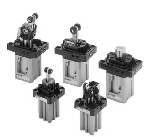 氣缸內徑: φ20~80 (mm),複動附彈簧,滾輪附緩衝阻擋,使用壓力範圍:0.2~1 MPa,