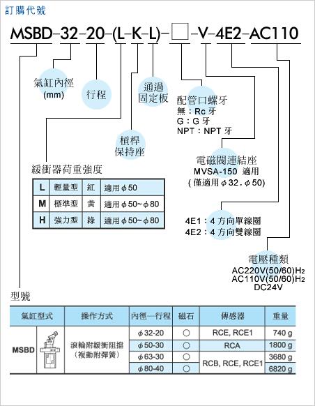 作動缸徑—行程   φ32-20, φ50-30, φ63-30, φ80-40