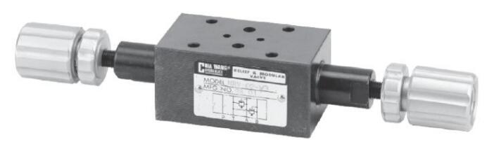 特点: MRV系列积层型调压阀可使用P孔、A孔、B孔 或A-B孔至油箱和A-B孔交叉有效的限制压力。 阀本体铸铁强度够且耐久,寿命长。 内部硬钢原件提高产品寿命。 四种标准压力设定选择。 六角螺丝或把手两种压力调整选择。